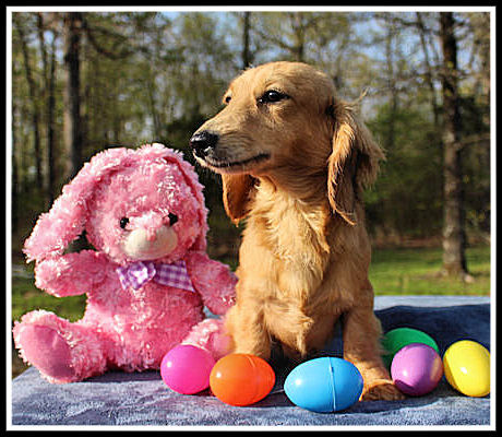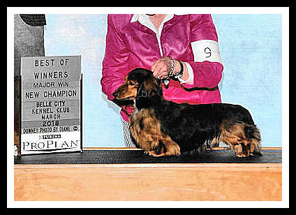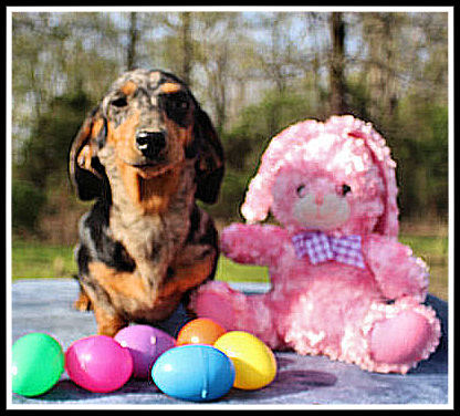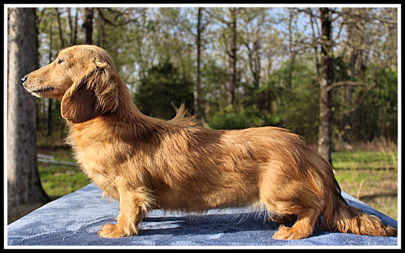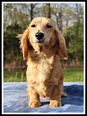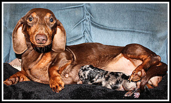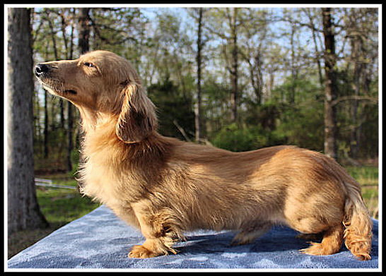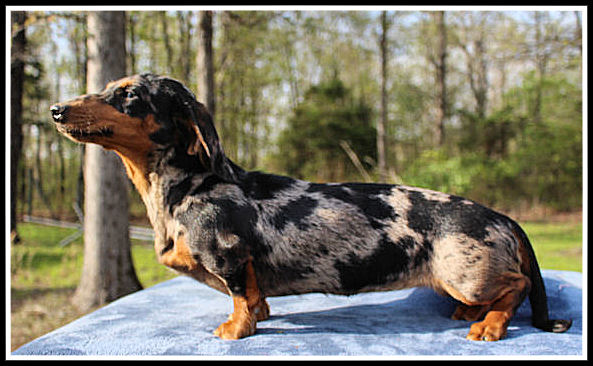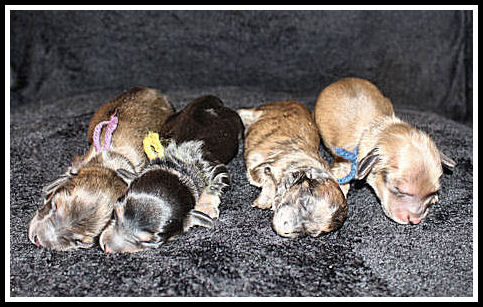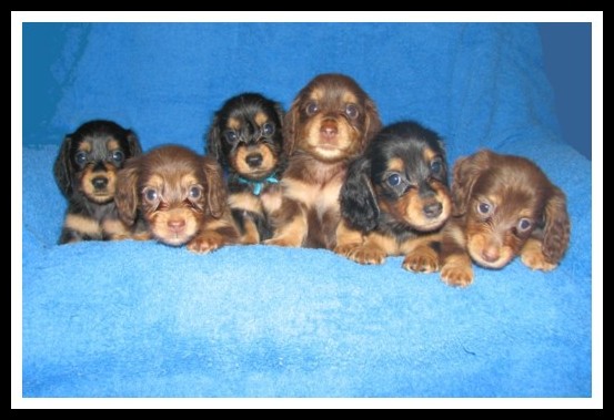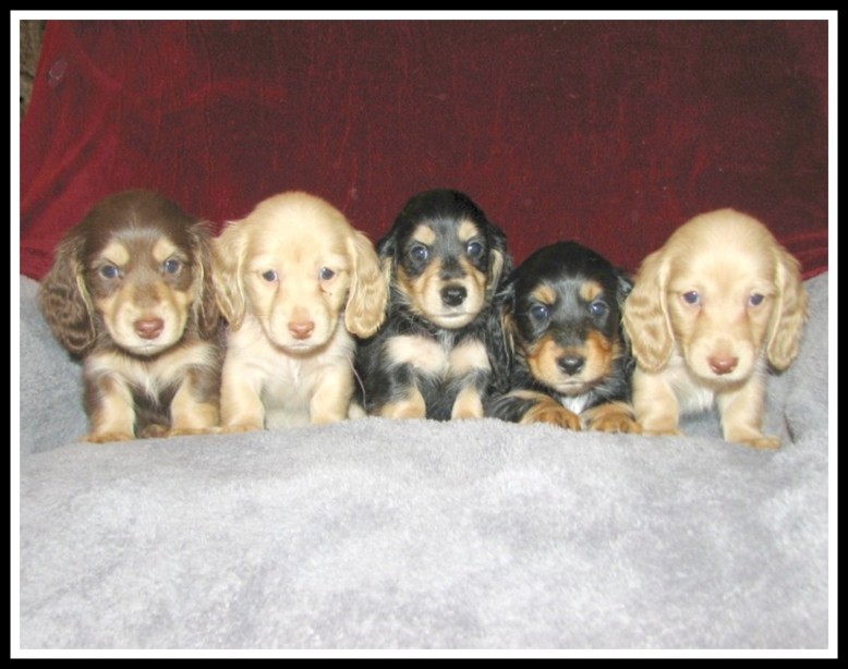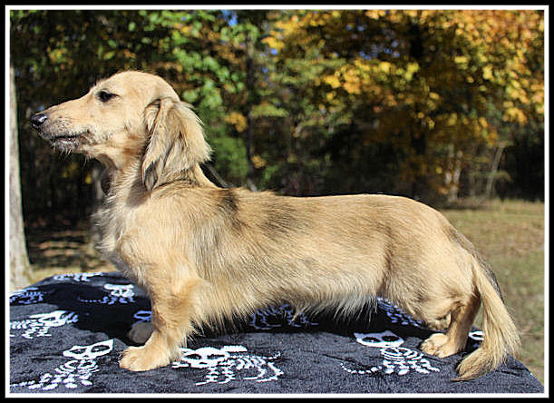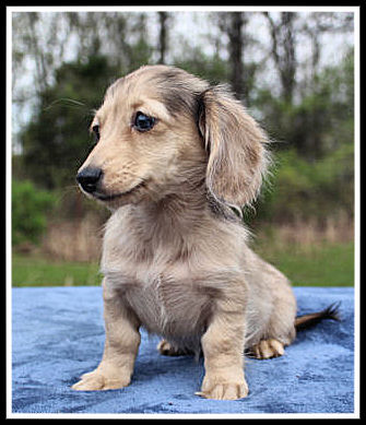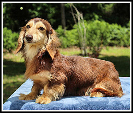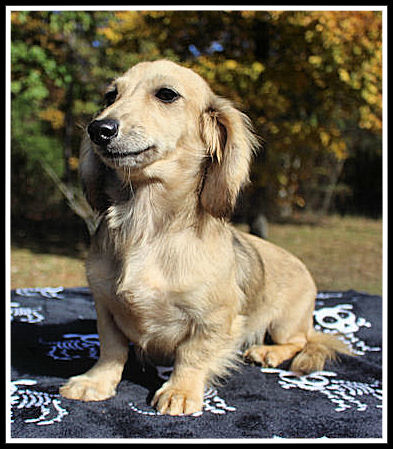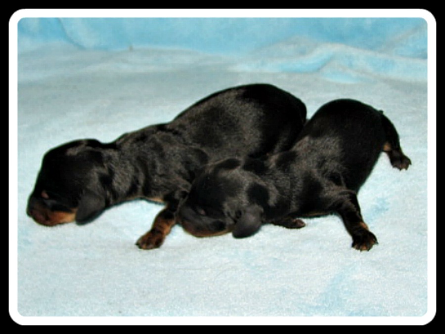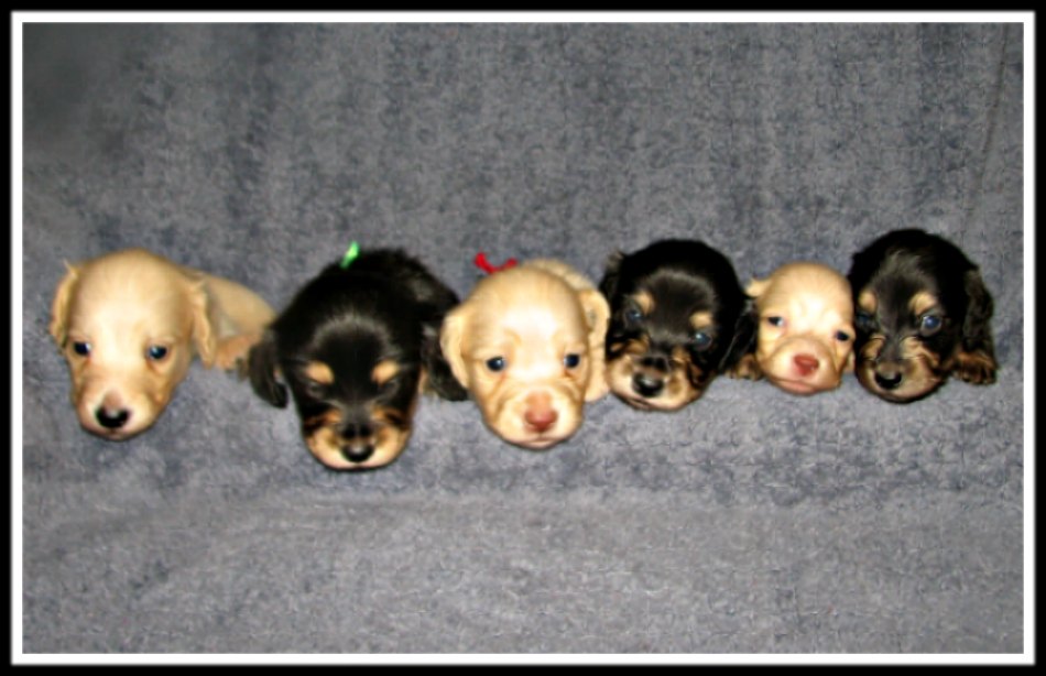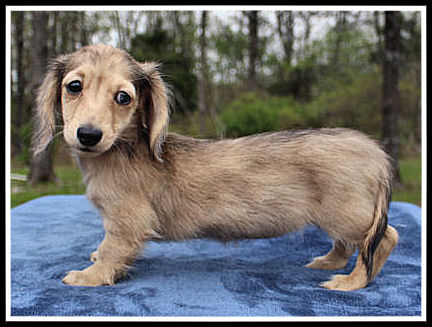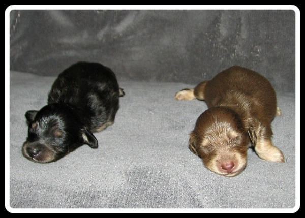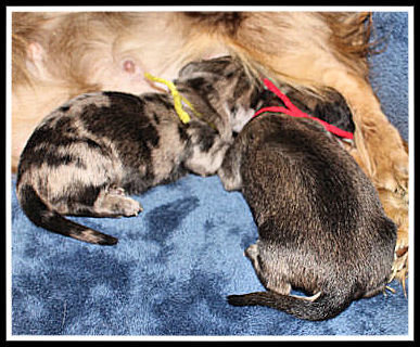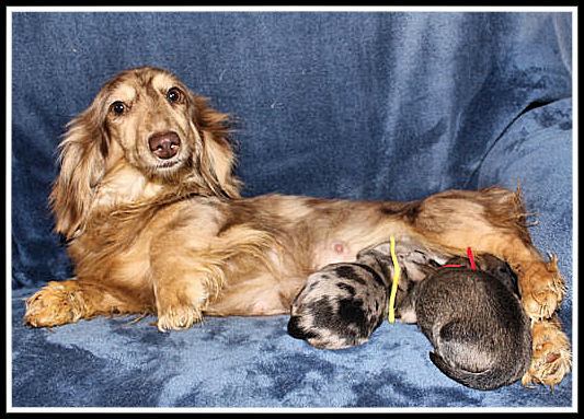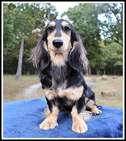 Trinity & Sterling have two stunning pups! Unfortunately the second one born took too long and didn't survive. This will be Trinity's first litter. Both long & smooth coats possible. We have a smooth blk/tan dapple female that carries for chocolate.