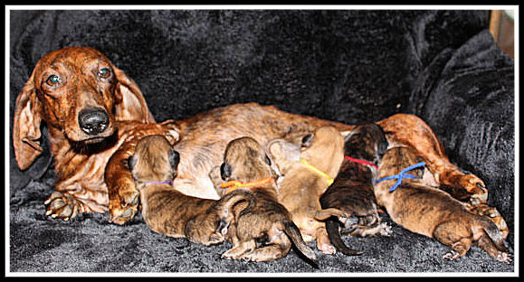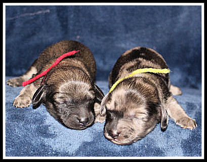 Cinder & Marble have five gorgeous babies Sadly one lil female didn't survive. We have three very nice brindles and one cream from these two. This is Cinder's first litter, can"t wait to see what they have! Both long & smooth coats possible.